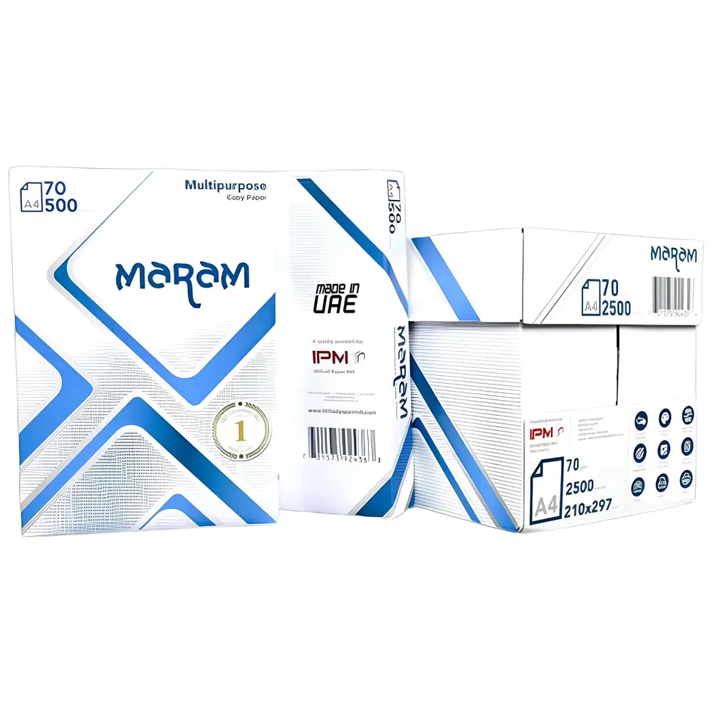 Ideal for both home and commercial use, Maram Multipurpose Paper comes in standard A4 size (210 x 297 mm) and is conveniently packaged in reams for easy storage and handling. Its optimized thickness and weight allow for double-sided printing without bleed-through, saving costs and reducing paper usage Maram A4 Multipurpose Paper.